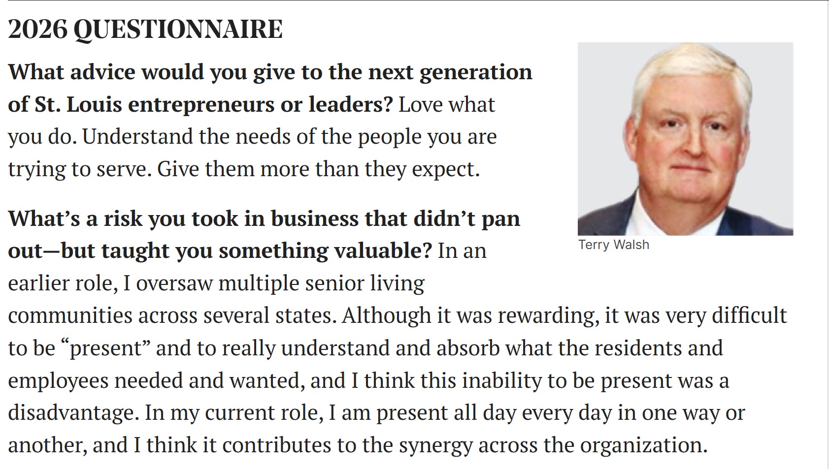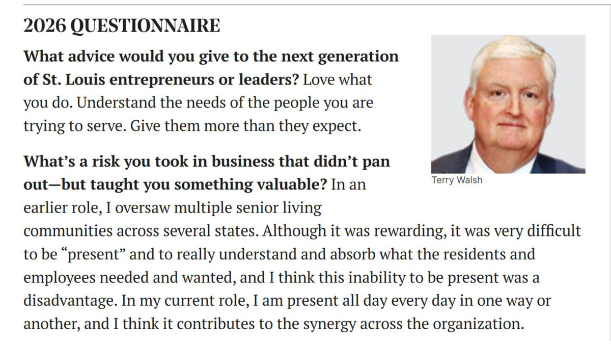 For the second straight year, we are proud to announce our President & CEO Terry Walsh has been named to the St. Louis Magazine Business 500! The magazine’s special section highlights some of the metro area’s most impactful, innovative, and inspirational leaders across an array of industries. We are so thankful to have Terry leading our team. Click HERE to read the full magazine piece.